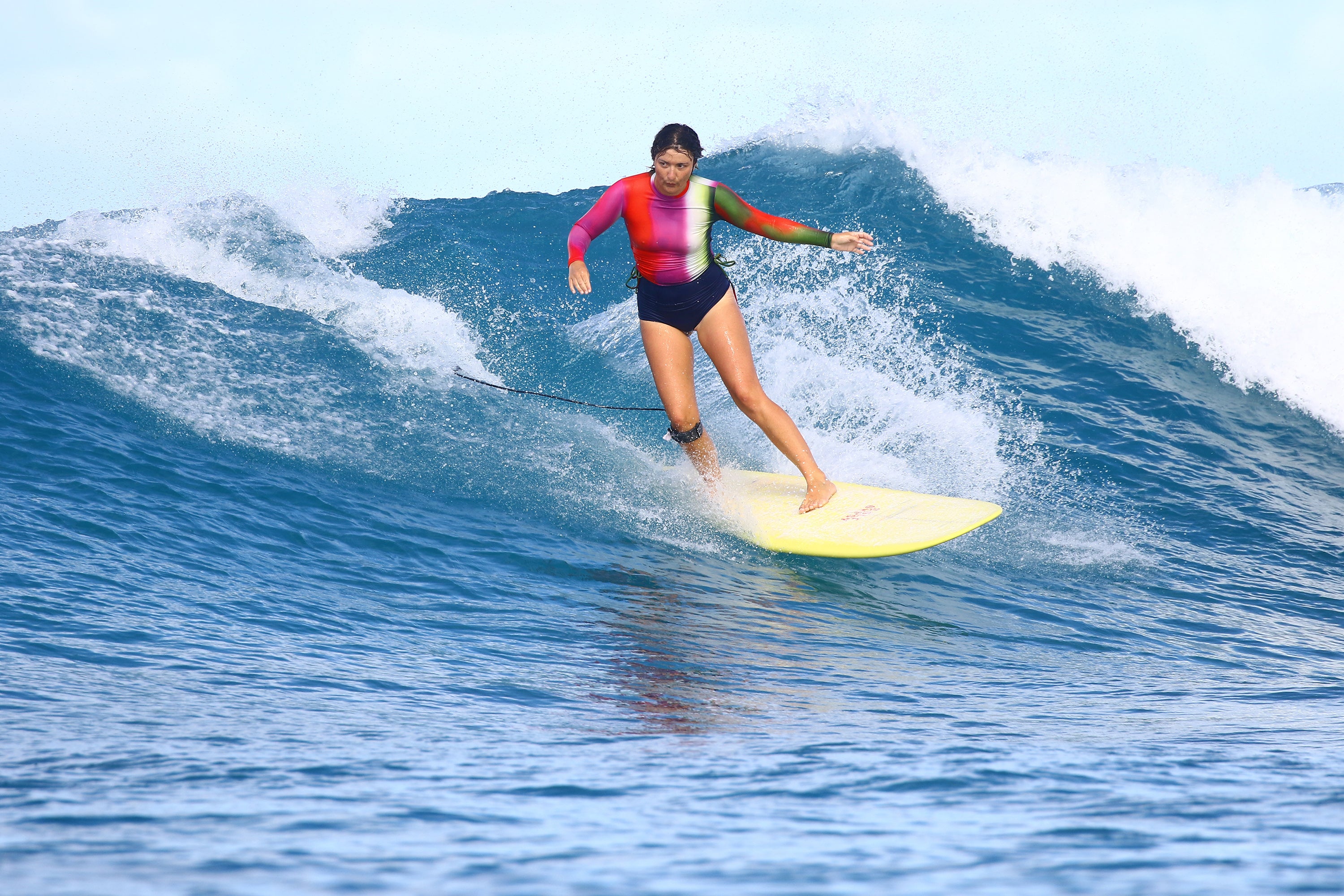 The Dusty is a lightweight, retro style longboard that is easy to maneuverer. There’s some nose concave up front for the more experienced ladies chasing some hang five time, a simple rolled vee all the way through the back, and a decent amount of tail lift to assist with easy rail-to-rail turning.