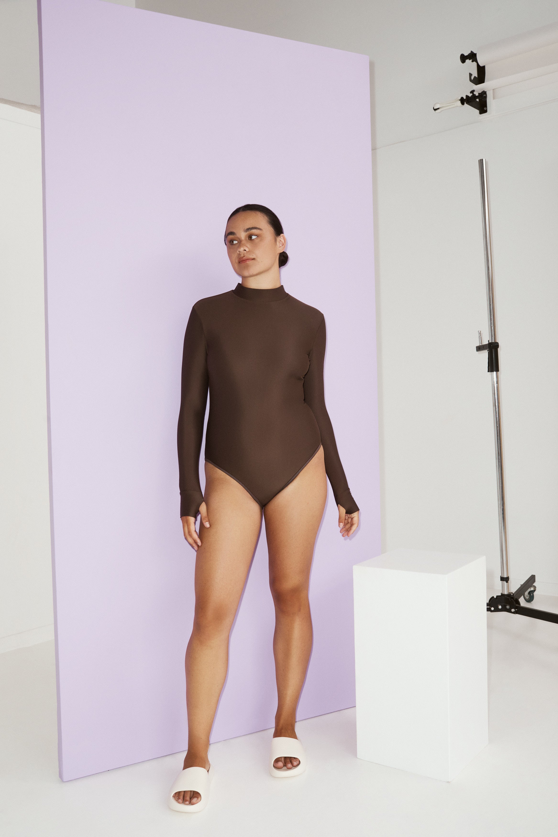 You've been asking and we've been listening. Redeveloping our Turtleneck Surfsuit with extra arm length to cover our hands and coming in a tailored fit with our signature turtleneck cut, fully lined with zipper at back. This surfsuit offers moderate bottom coverage and is UPF 50+ for high UV sun sessions.
