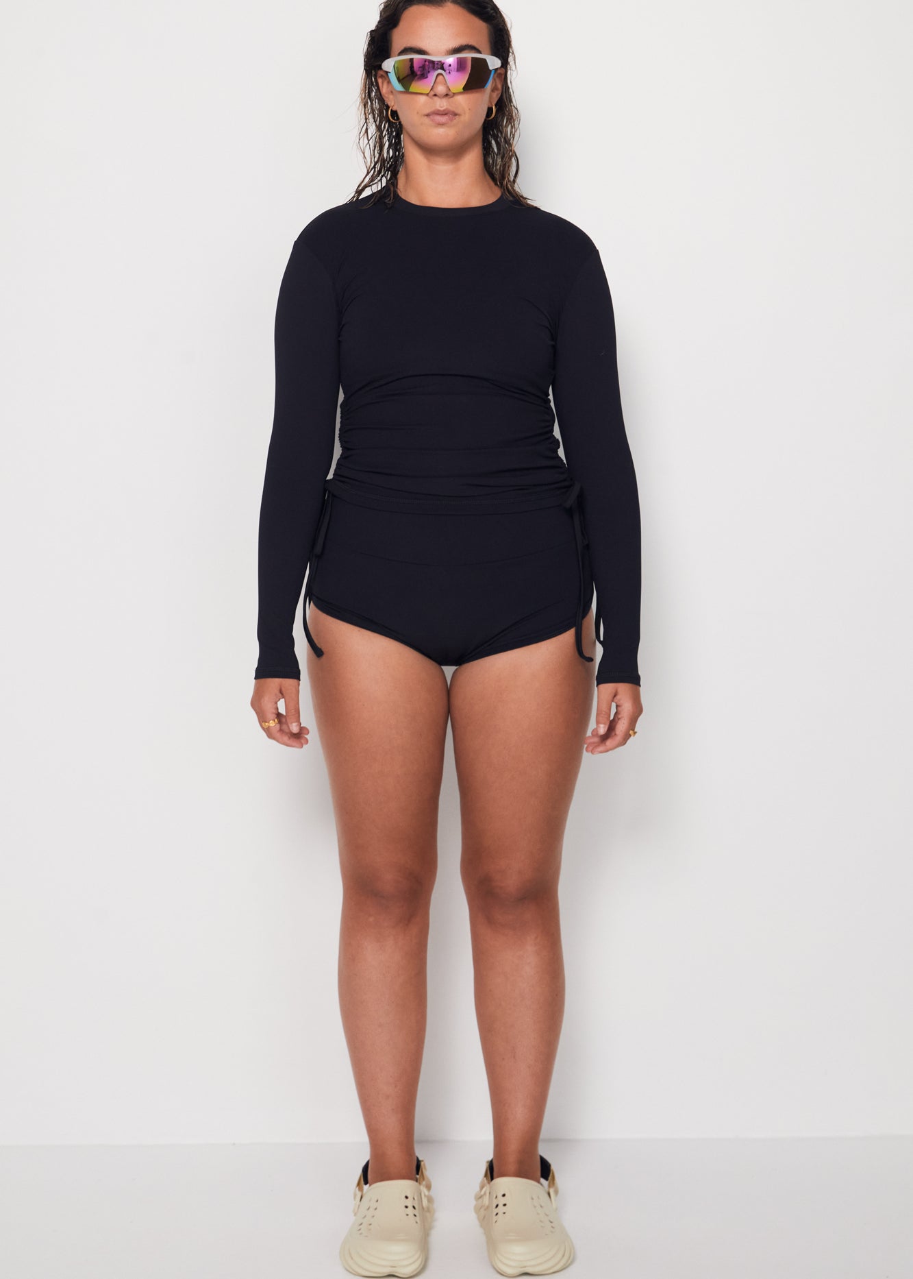 Ruched Rashguard - Black Rib