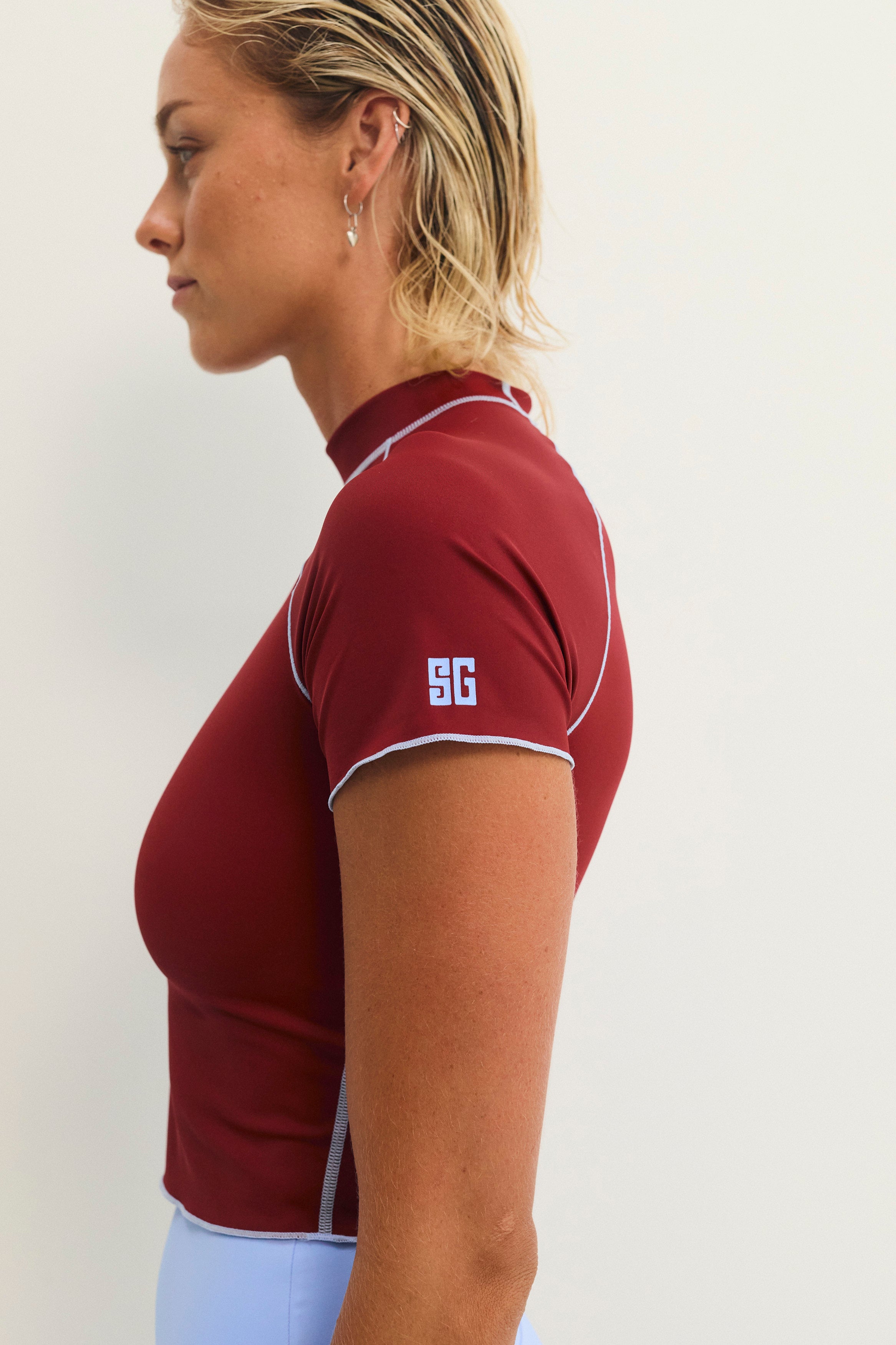We dialled in the design with a cropped torso for freedom of movement (and a peek of your favourite surf bottom), raglan sleeves for easy paddling, and a streamlined fit that stays put when the surf turns on. Built for all-day ocean missions, this piece balances style and performance like a pro.