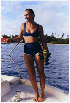 Designed as a swim top to wear on it's own or layer under rashguards and surfsuits, this swim top is one of our new surf wardrobe essentials. Featuring a deep scoop neck and contrast binding this is a low-mid impact style best suited for for small wave days and poolside lounging when it's onshore.