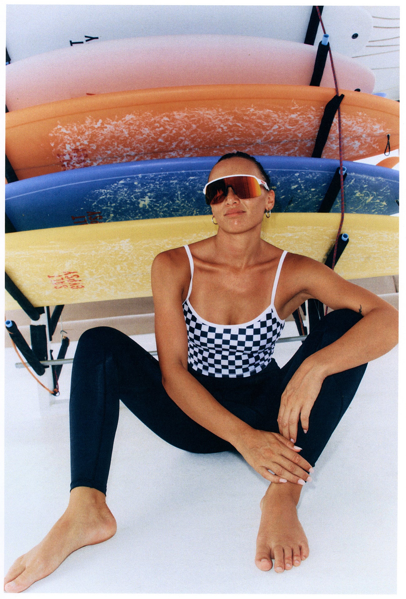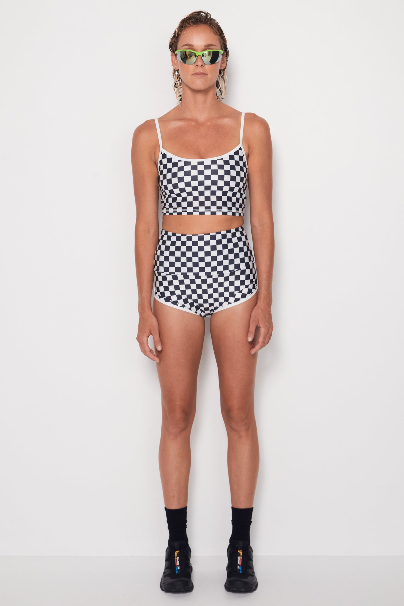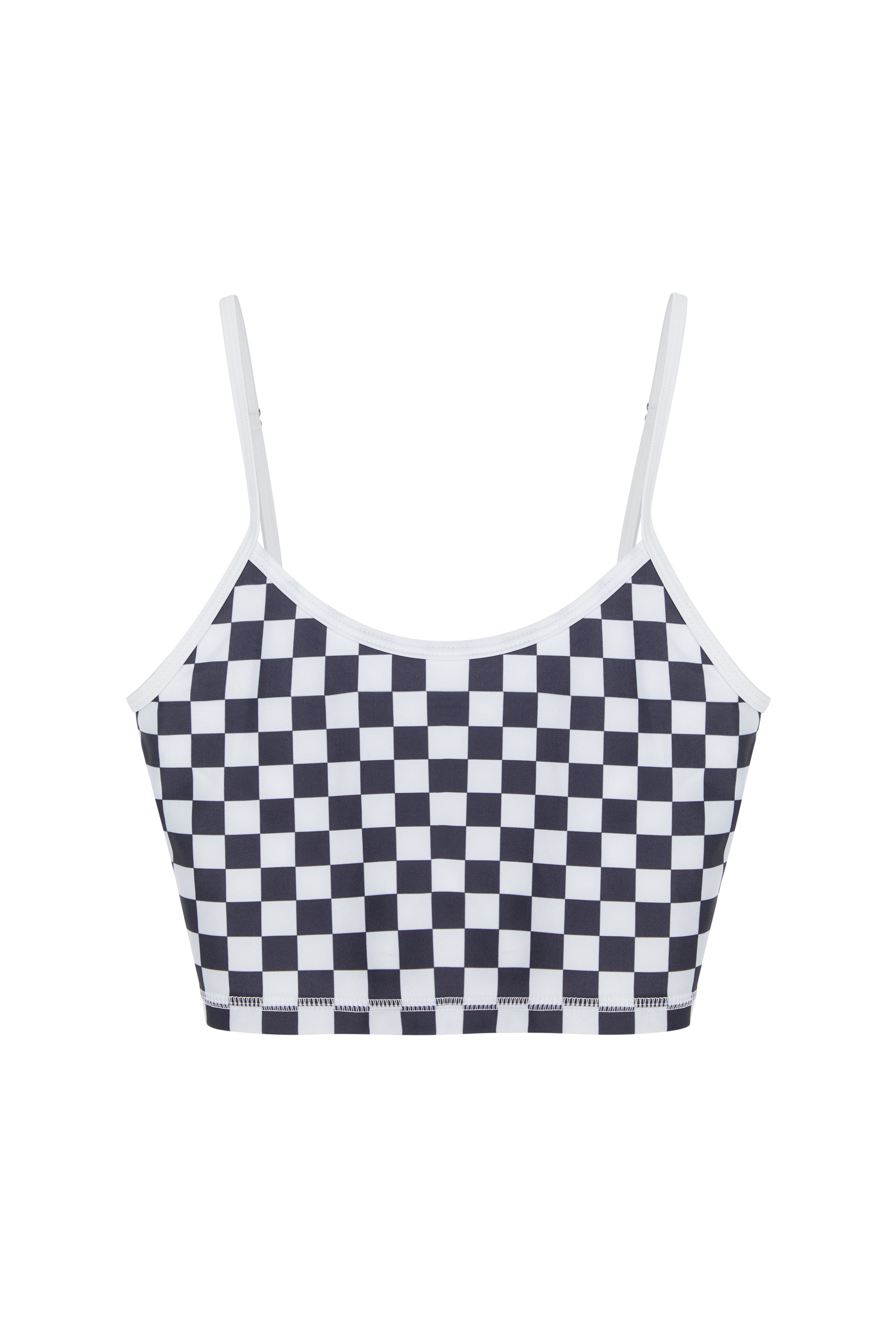 Introducing our latest must-have: the Cropped Tankini featuring the iconic B+W Checkers pattern.