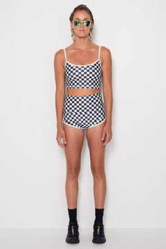 Cropped Tankini Surf Top - B+W Checkers