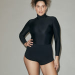 Our signature Turtleneck Rashguard has been designed to keep our décolletage covered from harsh UV rays. This fashion-forward style features our signature turtleneck cut for ultimate UV sun protection. The classic style is long in the torso and the fit is tailored with a slight flare that sits snug at hips.