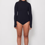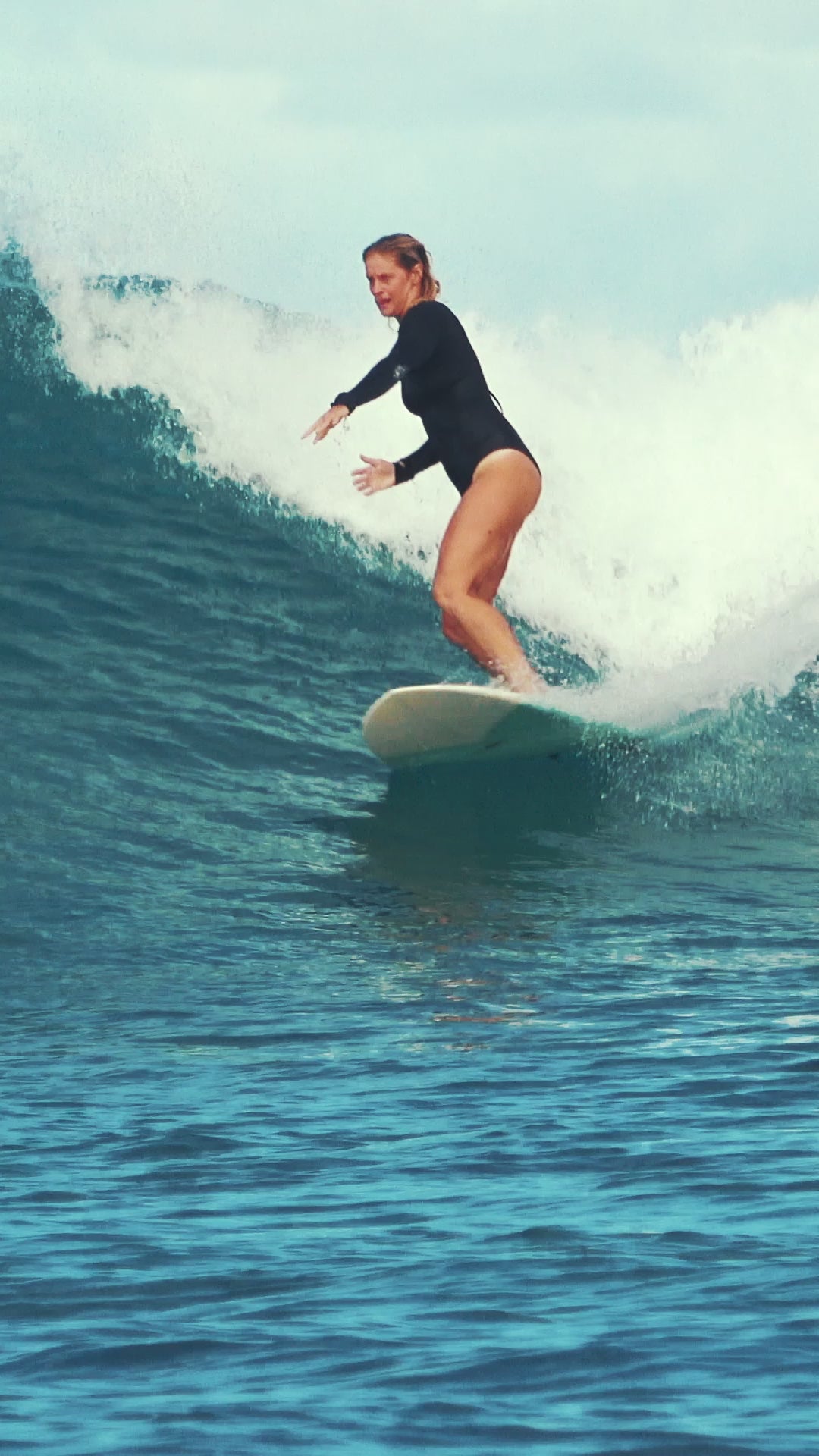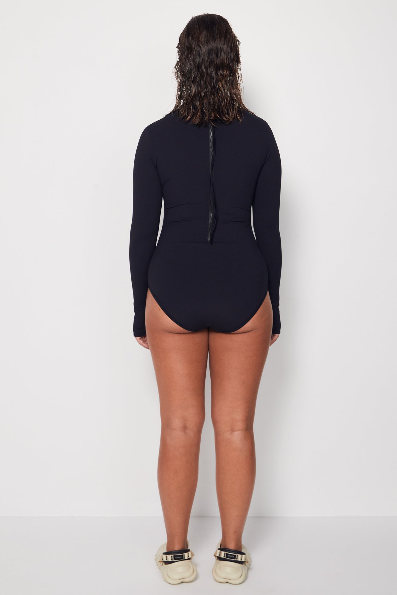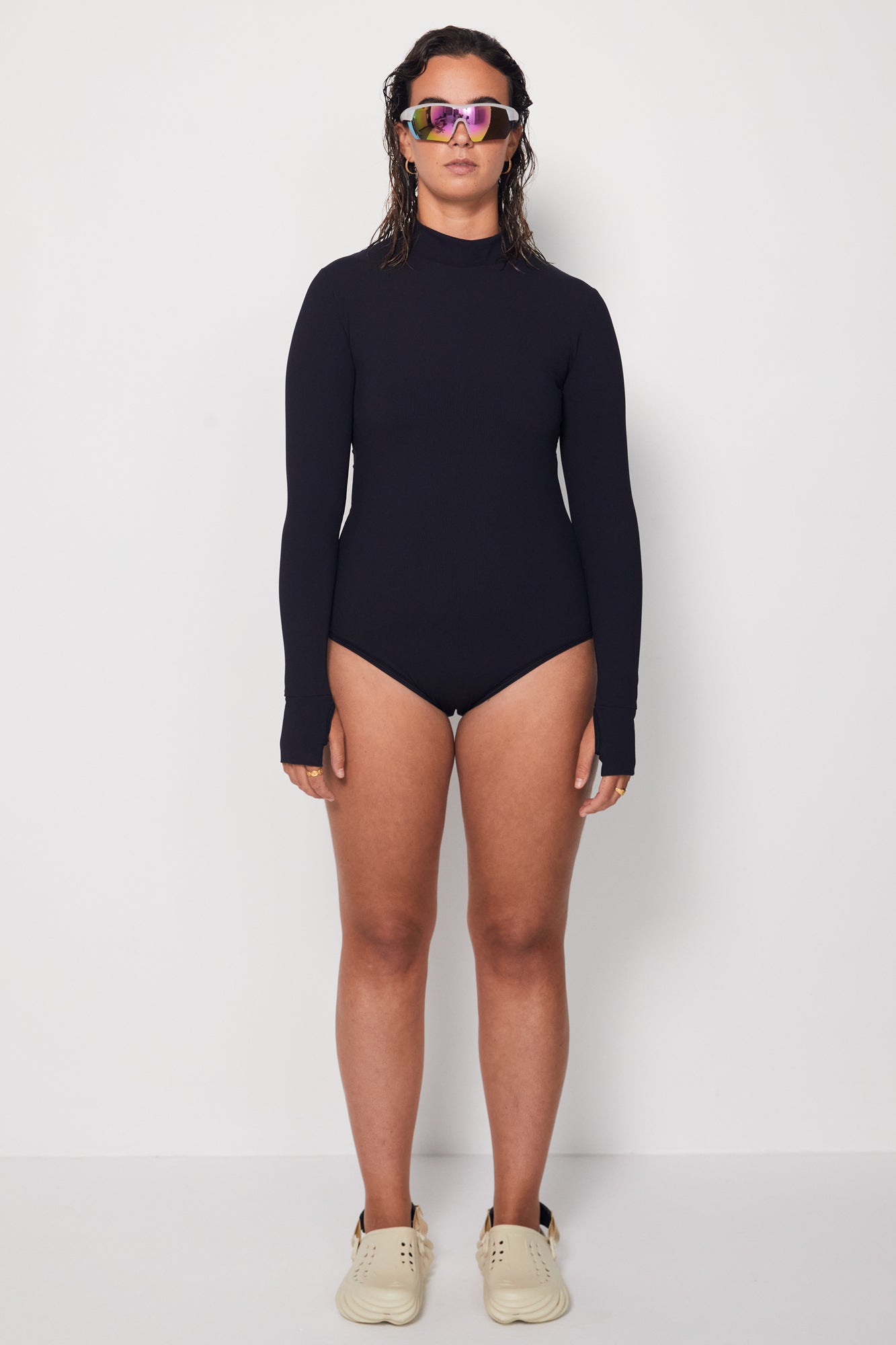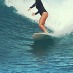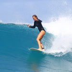We love surfing but we hate shit slipping sideways/down/up/off. In thinking of how to improve the standard surfsuit, we wanted sun protection for our oft-forgotten hands, our high turtleneck cut, bum and full back coverage - all high sun touchpoints while surfing.