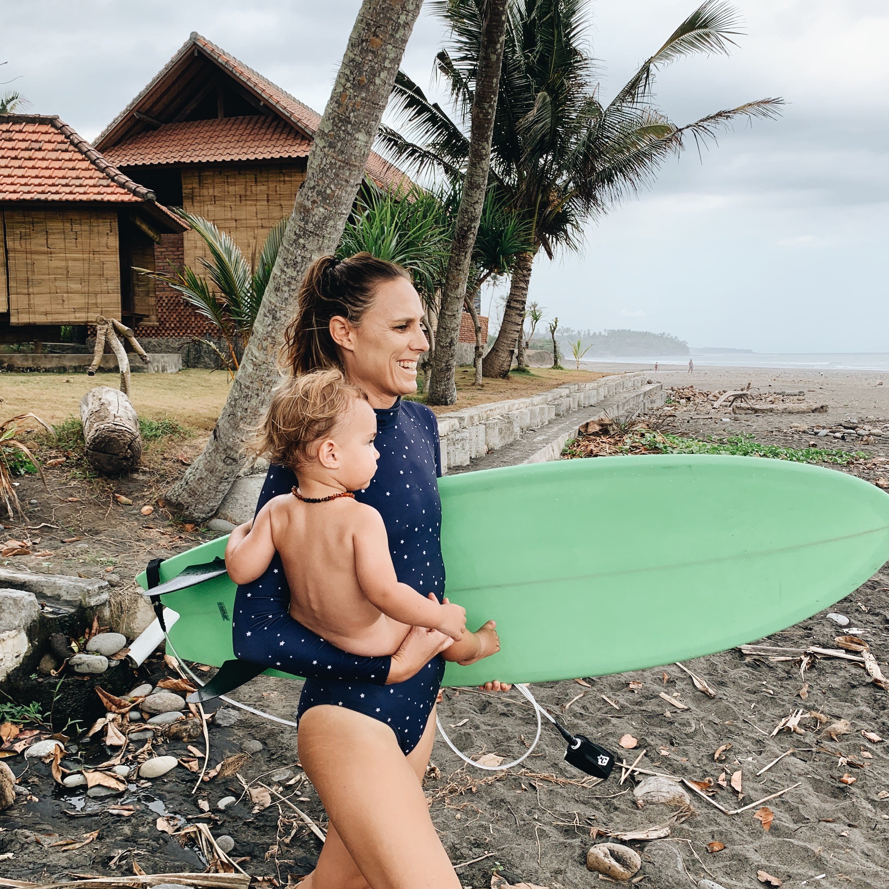 I needed a product that wasn't available for core oceanwomen at the time. During a visa run to Bali, I had two pairs of custom surf leggings made to my own design.